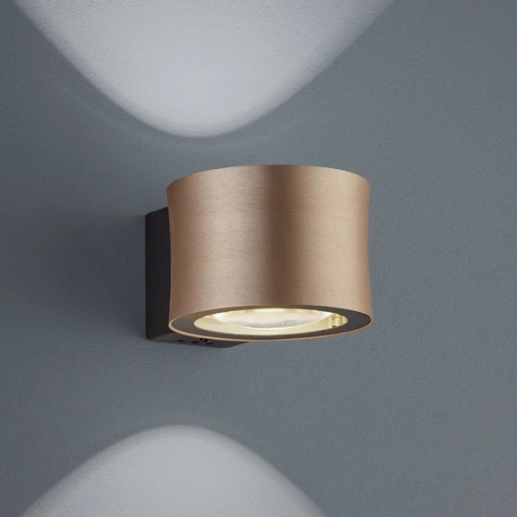 Roosakas-kuldne meeleolu looja - Impulse LED-seinavalgusti Impulse LED-seinavalgusti roosakas-kuldne anodeeritud pea on silindrikujuline ja kiirgab oma sooja valget valgust nii üles- kui ka allapoole. See tekitab seinale, lakke ja valgusti alla jäävale alale kauni valguskoonuse, mis valgustab ruumi ilusa kaudse valgusega. Silindrikujuline valgusti on kinnitatud seinale musta, ristkülikukujulise alusega. Bernd Beisse loodud lambi disain on eriti efektne tumedatel seintel ja suudab oma mõju täielikult avada. Bernd Beisse on tuntud selle poolest, et ta muudab ruume sihipärase valguse kaudu ning kasutab valgust muutmiseks ja mõju mõjutamiseks vaatajale. Hajuti võimaldab laia valguskoonust ilma pimestuseta ja soovimatuid peegeldusi tekitamata.
