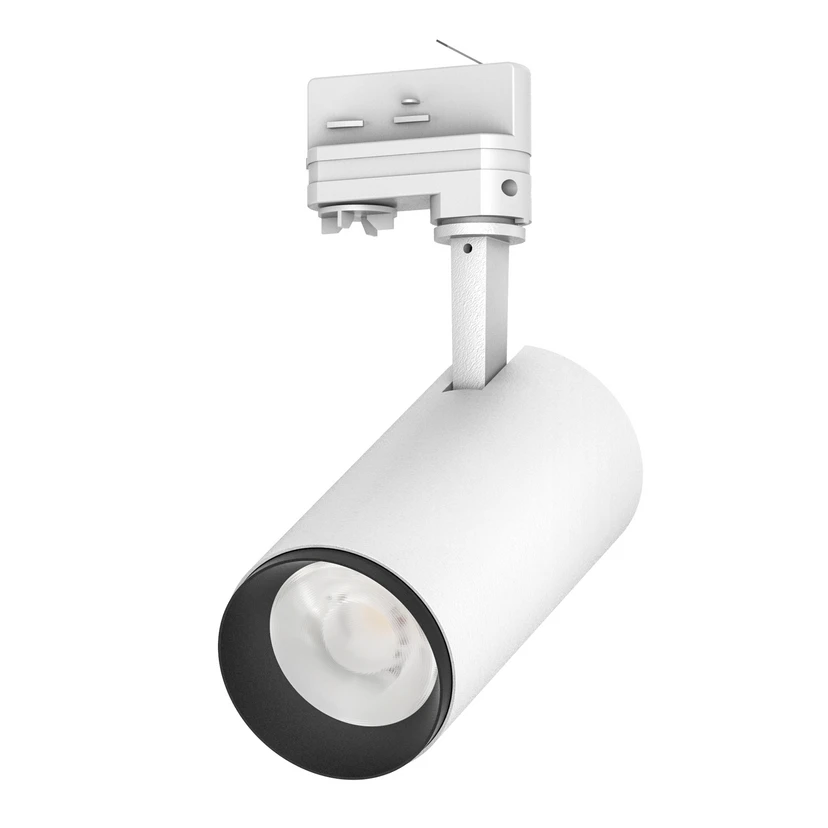 SLIMtrack - 3-faasilise rööbastee süsteemi LED-valgusti, mis on pööratav ja kallutatav Kaasaegne alumiiniumist survevalu LED-valgusti SLIMtrack on varustatud silindrilise peaga, millel on passiivne jahutussüsteem. Keskmise laiusega sümmeetriline valgusnurk 36° sobib ühelt poolt pindalavalgustuseks; tänu joondamisvõimalusele, vabale paigutusele 3-faasilises rööbastees ja heale värviedastusele saab asjakohaselt valgustada ka müügipindu. - koos juhtimisseadmega (sisse/välja) ja rööbastee adapteriga - hea värviedastus: CRI > 92 - 350° pööratav, 90° kallutatav - ülepingekaitse kuni 1,5 kV - välistemperatuur töö ajal: - 20 °C kuni + 45 °C