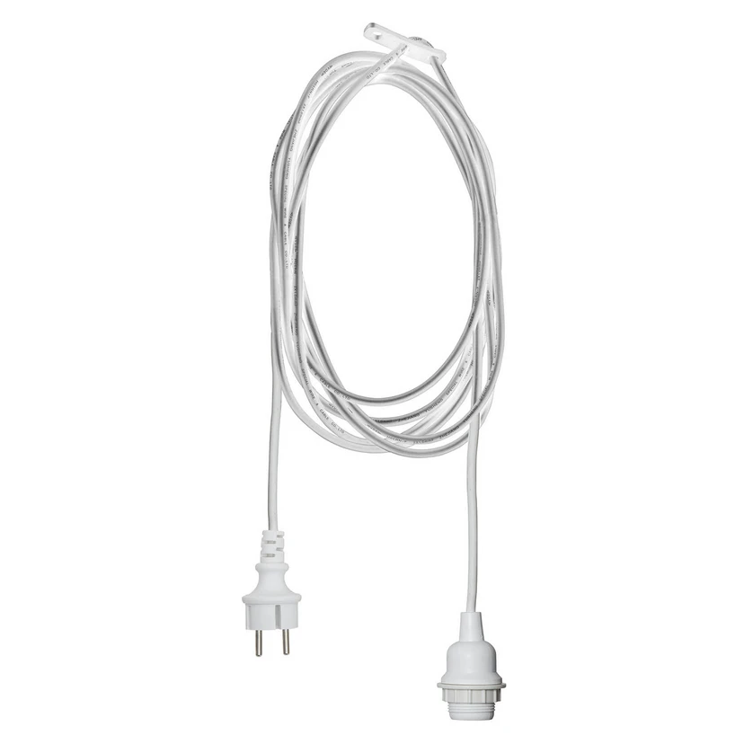 E27 pistikupesa Ute kaabliga, 2,5 m, valge