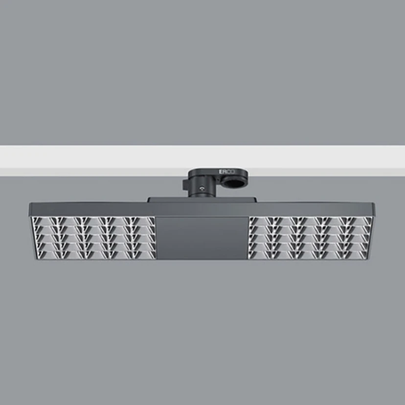 Jilly LED-ribavalgusti ERCO'lt Casambi rakenduse kaudu juhtimiseks 230 V 3-faasilise rööbastee jaoks - 15 W LED, eriti lai valgusjaotus (82°) Jilly pakub kontoris tõhusat töövalgustust eriti laia valgusvihuga ja head pimestuskaitset tänu optilisest polümeerist valmistatud spetsiaalsele läätsesüsteemile ja pimestusvastasele ribalambile. Tänu oma konstruktsioonile rööpvalgustina saab seda paindlikult paigutada vastavalt vajadusele ja rööpaadapter võimaldab seda pöörata 360°. Jilly ühendatakse nutitelefoniga/tahvelarvutiga Bluetoothi kaudu, et juhtida valgustit - individuaalselt või grupina - Casambi rakendusega - pimestusvastane räigus: plastist, alumiiniumiga kaetud, hõbedane, kõrgelt peegelduv - koos rööbasteeadapteriga ERCO 3-faasilise rööbastee, Hi-trac 3-faasilise rööbastee ja 1-faasilise punkthoidiku jaoks - standardikohane pimestusjuhtimine ekraanitöökohtadele: UGR < 19 - ühendatud koormus: 18 W - koos ERCO Casambi juhtimisseadmega - ühendus nutitelefoni/tahvelarvutiga Bluetoothi kaudu - lülitatav, timmitav ja integreeritav stseenidesse Casambi rakenduse kaudu (saadaval tasuta iOS ja Android jaoks) - juhitav koos teiste Casambi-ühilduvate toodetega