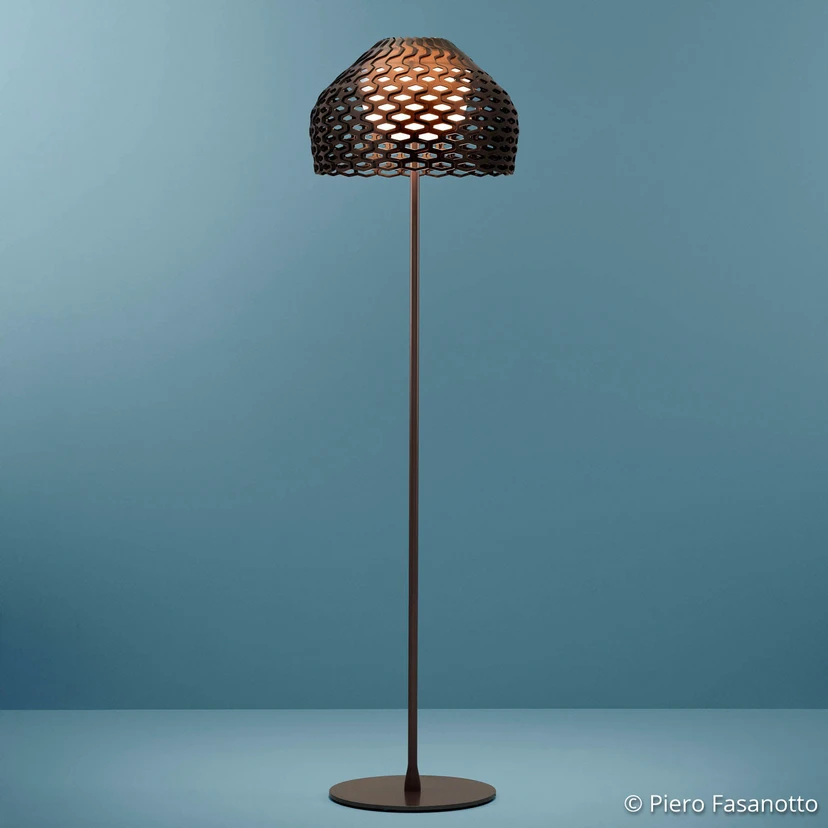 Muljetavaldav Tatou disainpõrandavalgusti: valgusallikas ja dekoratiivne objekt korraga Tatou põrandavalgusti on väga eriline esiletõstmine elutuppa: nii sisemine kui ka välimine hajuti on valmistatud polükarbonaadist, mille välisse varju on sisseehitatud mustrilised valguse väljalõiked. Sisemine hajuti on opaalvärviline ja tagab pimestusvaba valguse kiirguse. Kahe hajuti kombinatsioon loob põneva valgusatmosfääri. Tatou on tuntud Hispaania arhitekti ja disaineri Patricia Urquiola looming, kes on tuntud eelkõige oma suurejooneliste mööblidisainide poolest. Tatou on loodud koostöös Itaalia valgustifirmaga FLOS, mis on tuntud tuntud tuntud disainerite disainide kvaliteetse teostuse poolest.