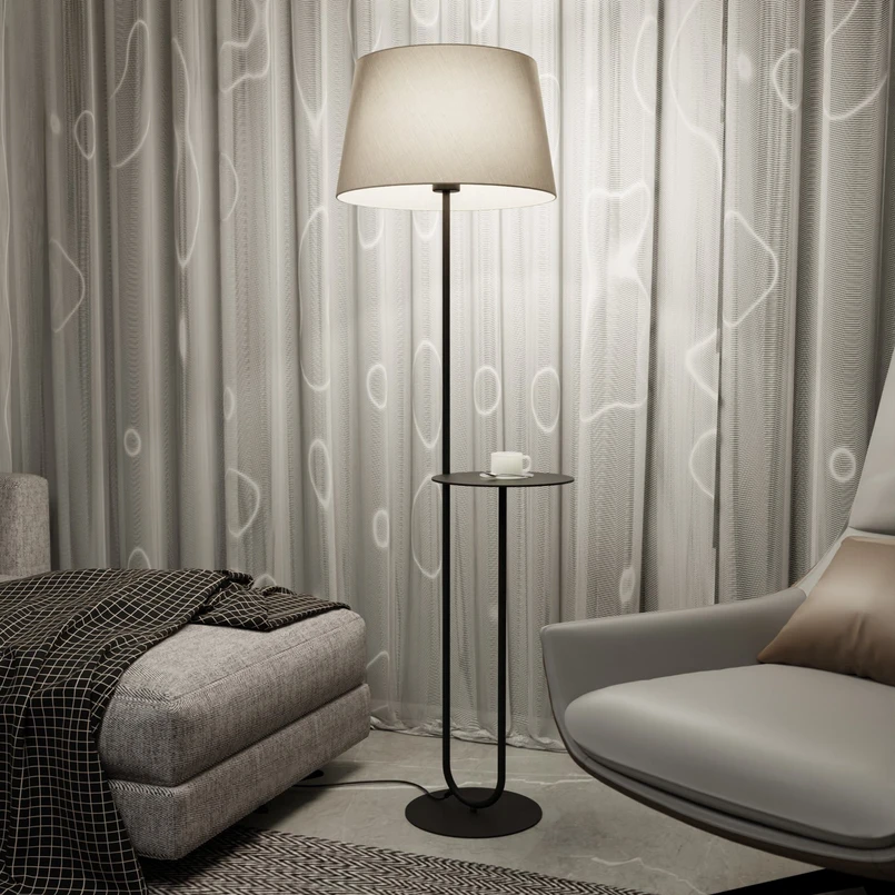 Hotel põrandavalgusti kangast varju ja praktilise hoiulaud Hotel põrandavalgusti ühendab endas kaasaegse disaini ja kvaliteetsed materjalid ning on pilkupüüdev igas ruumis. Kanga ja terase kombinatsioonist valmistatud valgusti kiirgab ajatut elegantsi, mida saab sujuvalt integreerida erinevatesse interjööristiilidesse. Harmooniline värvitoon beežis ja mustas toonitab selle mitmekülgsust ja teeb sellest ideaalse kaaslase elutuppa, söögituppa või magamistuppa. See Euroopas toodetud valgusti ei avalda muljet mitte ainult oma esteetilise välimuse, vaid ka funktsionaalsuse poolest. Sellel on integreeritud laud, nii et seda saab kasutada voodi või diivani kõrval raamatute, prillide, mobiiltelefonide, ajakirjade jne hoidmiseks. Seega ei ole põrandalamp Hotel mitte ainult valgusallikas, vaid ka stiilne element, mis lisab igasse ruumi erilise atmosfääri.