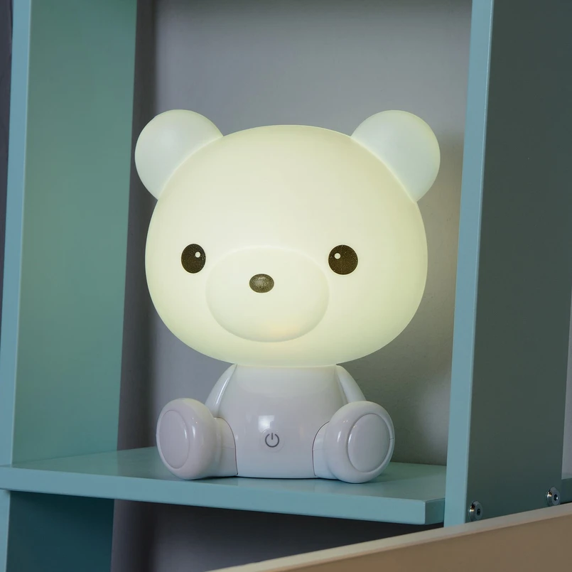 Laste laualamp Dodo karu, valge, timmitav, ABS