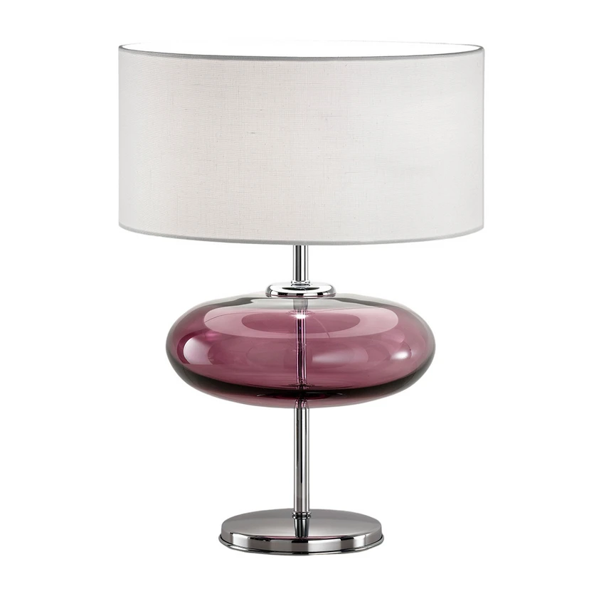 Show Ellisse laualamp roosa klaasist ellipsiga Show Ellisse laualamp oma valge tekstiilist varju, kroomitud metallraami ja imelise roosa klaasist ellipsiga on pilkupüüdev igas ruumis, nii eraruumis kui ka hotellis. Klaas on suupuhutud Itaalia käsitöönduslikus traditsioonis ja selle värviline, läbipaistev ilu rõhutatakse muljetavaldavalt valgusega, mida see kiirgab. Show Ellisse: ehtekivi igasse interjööri, nii sisse- kui ka väljalülitatud.