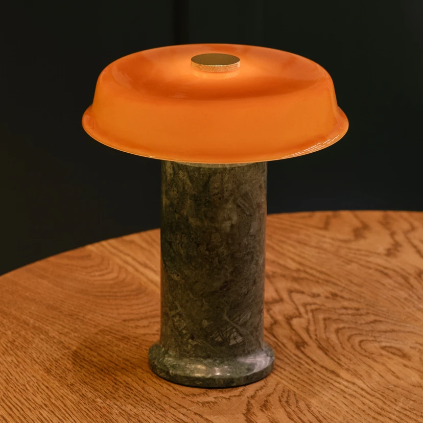 LED-akulaadimisega laualamp Trip No. 2 marmorist ja klaasist, IP-koodiga 44