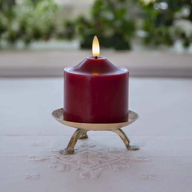 LED küünlaleek, kõrgus 9,5 cm punane ehtne vaha, patareiga töötav