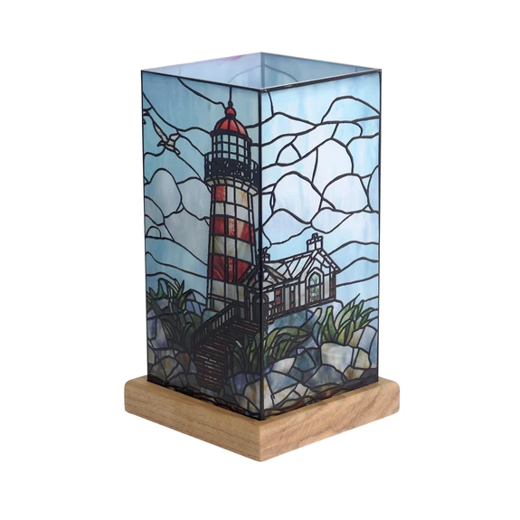 Laualamp Art Light Leuchtturm koosneb värviküllasest akrüülist ristkülikukujulisest varjost, mis asetseb nelinurksel puidust alusel. Puidust aluses on soe valge LED, mis valgustab varjost ja toob värviküllase majakamotiivi efektselt esile.