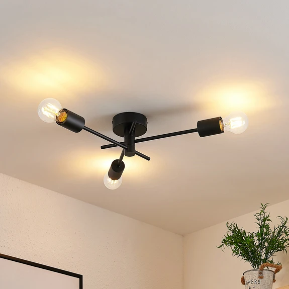 Lindby laelamp Cerros, 3-põletiga, must, metall