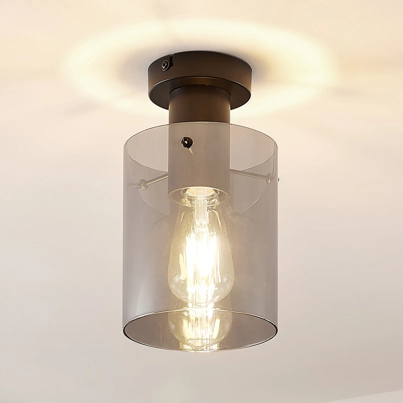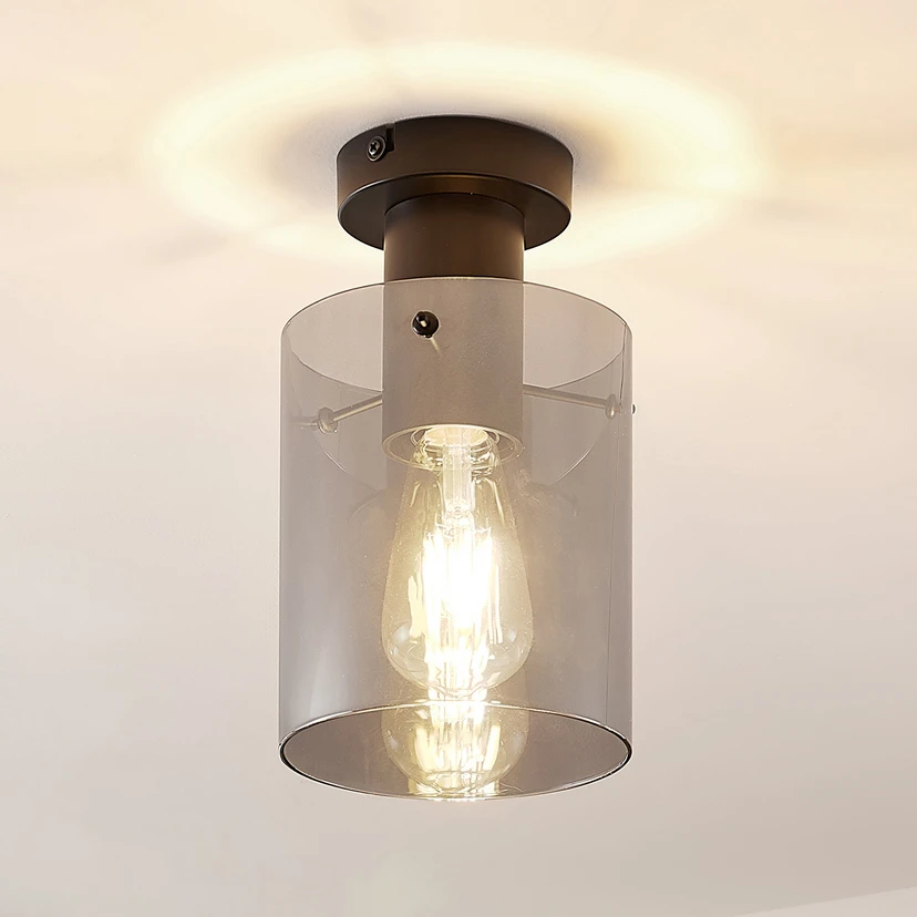 Lindby laevalgusti Kourtney, Ø15cm, must/hall, klaas, E27