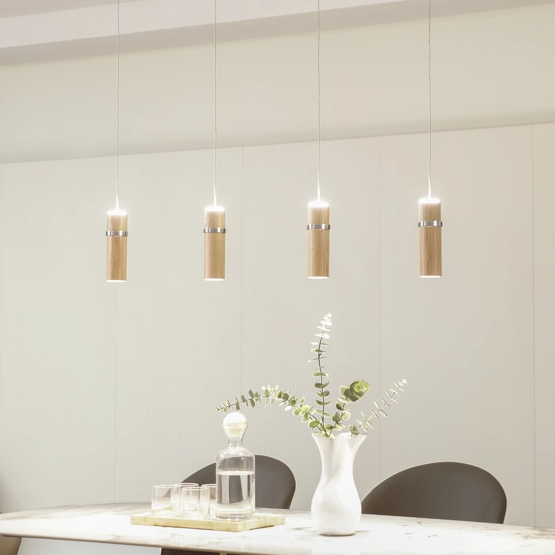 Nojus neljavalguseline LED-riputatav lamp puidust silindrite ja üles/alla valgustusega Nojus lamp on suurepärane valik teie koju. Valgusti on suurepärane valgusallikas ja muutub tänu oma kaunile disainile kaunistuseks iseenesest. Hämardamisfunktsioon võimaldab heledust optimaalselt reguleerida välise dimmeri abil. Suurepärane elamus ja õnnestunud disain iseloomustavad seda Lucande'i kaubamärgi rippvalgustit. Mudel Nojus särab hubases soojas valges valguses. Olenemata sellest, millise sisustusstiiliga seda kombineeritakse, annab see igale eluruumile suurepärase tooni. Tänu oma kaunile välimusele harmoneerub puidust ja kroomi värvides laevalgusti peaaegu iga atmosfääriga, luues mõnusa atmosfääri. Mudel Nojus ei ole mitte ainult suurepärane valgusallikas, vaid mõjub ka dekoratiivse sisustuselementina.