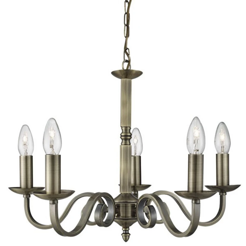 Klassikaline stiil - Richmond lühtri antiikmessingist Richmond lühtri disain on väga klassikaline vanade küünlajalgade stiilis. Sellel on viis valgusallikat, millest igaühes on E14-küünalambid ja mis võivad vabalt tuppa särada. Peened kumerused ja väikesed detailid muudavad kogu ansambli täiuslikuks valgustuseks söögilaua kohal, elutoas või esikusse. Valgusallikaid ei ole kaasas.