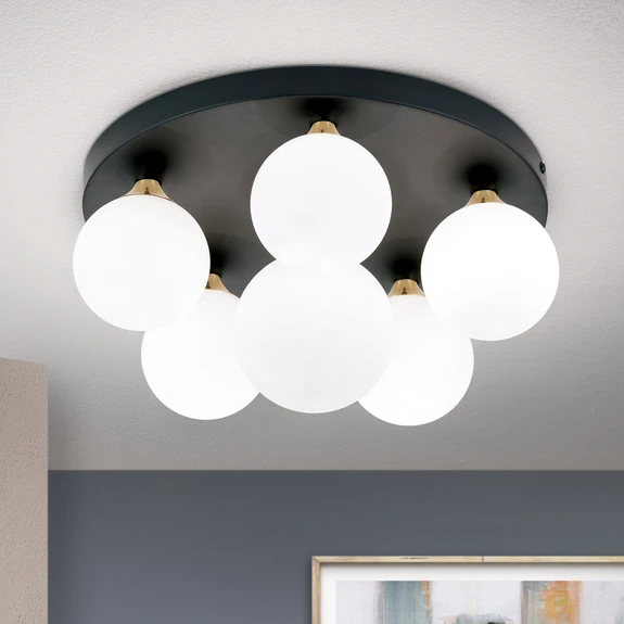 Lumivalge laevalgusti kuue valge opaalklaasist keraga Lumivalge - laevalgusti võlgneb oma nime kahtlemata kuuele klaasist kerale, mis on jaotatud ümber ümmarguse katuse. Lumivalged kerad ümbritsevad igaüks G9-sokolaadi ja võimaldavad pirnist lähtuvat valgust väga ühtlaselt ja eelkõige pimestamata igas suunas kiirata, nii et valgustit saab suurepäraselt kasutada mitmesuguste ruumide ümbritsevaks valgustamiseks. Kui kasutatakse timmitavaid valgusallikaid, saab heledust vastavalt vajadusele reguleerida ka sobiva dimmeriga (ei kuulu komplekti).