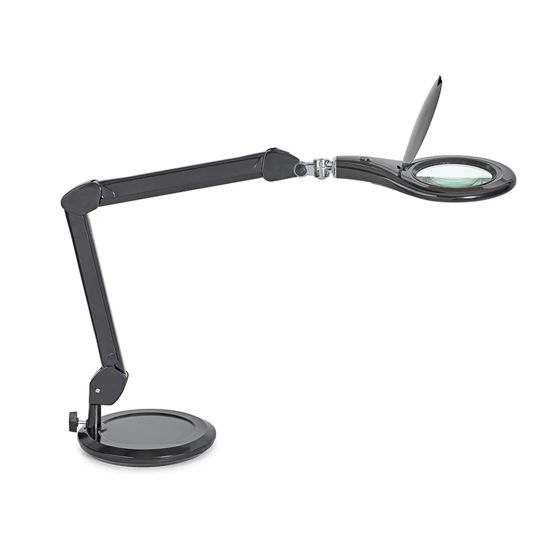 MAULmakro LED-luuplamp koos statiiviga - mitmekülgne MAULmakro LED-luuplamp oma tugeva parallelogrammi varre ja statiiviga on ideaalne praktiline töövalgusti laboritesse, tehnikakontoritesse, töökodadesse või kodusele töölauale. See on varustatud 3-dioptrilise läätsega (1,75x suurendus, Ø 12,7 cm). Objektiivi pindala on 144 ruutsentimeetrit. Kaitseklapp hoiab ära tolmu ja kahjuliku päikesevalguse. Pea ja käsivars on kallutatavad ja pööratavad, nii et töö ajal saab alati joondust reguleerida. Tänu rõngakujulisele LED-ile on valgusemissioon väga ühtlane. Valgus lülitatakse sisse/välja pea sisseehitatud lülitiga - Hajutiga, mis tagab minimaalse varjutuse - Pea on reguleeritav kolmes mõõtmes - Null energiatarve, kui valgustus on välja lülitatud - Valgustugevus: 2220 luksi 35 cm kaugusele
