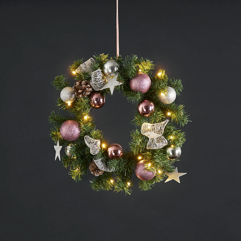 Noel LED kuusepärg hõbedase/roosa värviga kaunistusega