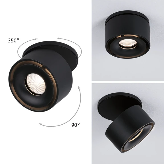 Paindlikult liigutatava valgustiotsaga Spircle sisseehitatud LED-valgusti Spircle ei avalda muljet mitte ainult oma kaasaegse, tööstusliku disainiga, vaid ka väga paindliku valguse suunamisega: valgustiotsikut saab pöörata 350° või pöörata 90°. See võimaldab valguskoonust suunata täpselt sinna, kus seda vajatakse, ning erilisi kohti ruumis, näiteks dekoratiivseid mööbliesemeid või maalinguid, saab spetsiaalselt valgustada ja täiuslikult rõhutada. Võimalik kombineerida paljude sisustusstiilidega - valgusvihu nurk: 36°