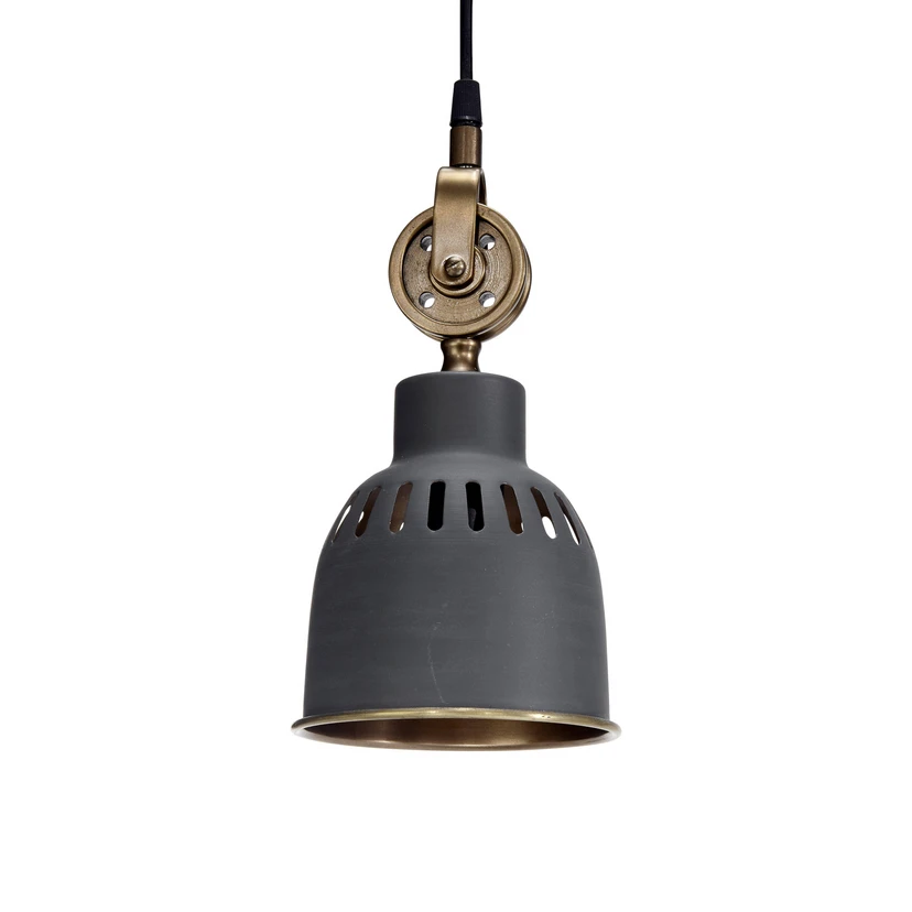 Tööstuslikus stiilis Cleveland rippvalgusti Clevelandi rippvalgusti tööstuslik välimus, mille metallvarju on väljastpoolt värvitud halliks ja seestpoolt antiikmessingist, on efektselt rõhutatud riputusvarda tehnilistel detailidel.