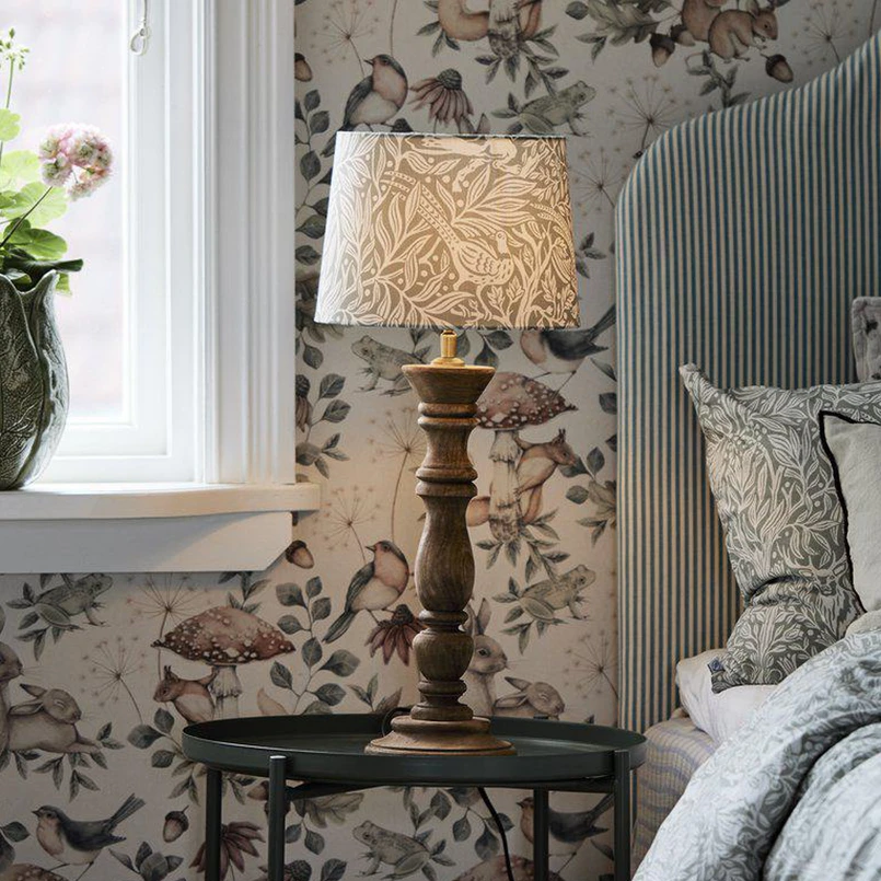 Hubane, naturaalne laualamp Lodge puidust alusega ja Sofia lambivarjuga, mis on halli vanamustriga See laualamp on meeldiv lisavalguse allikas. Mangopuidust Lodge alus on kombineeritud Sofia lambivarjuga. Viimane on valmistatud taaskasutatud polüestrist valmistatud tekstiilist. Hall muster kujutab stiliseeritud loodusmotiivi, millel on põdrakasvuliste okstega. Lodge'i sokkel on E27 lambipesaga.