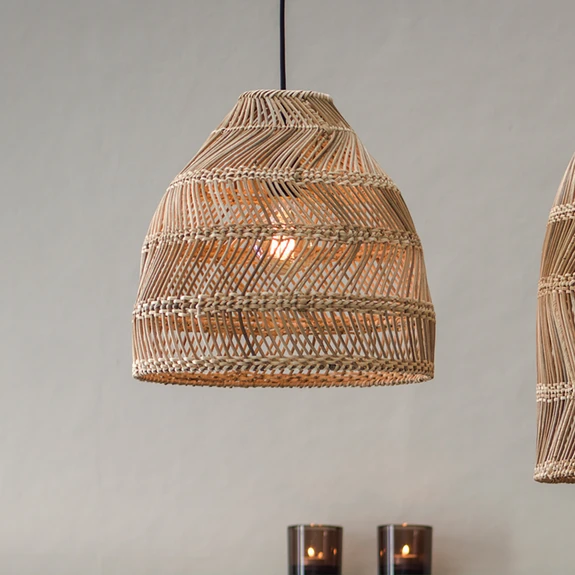 Stiilne õues - naturaalne Maja rippvalgusti Maja rippvalgusti toob hubasust ja valgust igasse talveaeda, kaetud terrassile või rõdule. See on valmistatud keerutatud rotangist. Kuna tegemist on loodusliku materjaliga, võib selle suurus veidi erineda ja värvus võib aja jooksul välismõjude (nt päikesevalguse) mõjul muutuda. Valgusti on varustatud umbes 2,5 m pikkuse, välitingimustes kasutamiseks sobiva plastkaabliga (IP44) ja ELi seinapistikuga. Vastav pirn ei kuulu komplekti