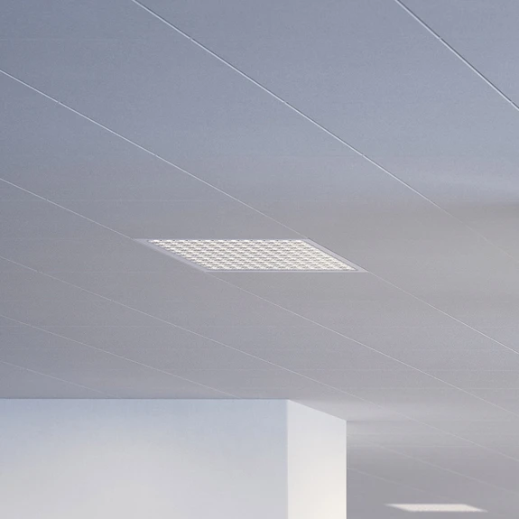 Ruudukujuline LED-lae sisseehitatud valgusti Dime Office spetsiaalse "Square Optics" kollimaatoroptikaga LED-lae sisseehitatud valgusti Dime Office pakub kontorivalgustuseks nii tasapinnalist kui ka suunatud valgust. Valgus kiirgab allapoole vähese pimestusega ja ilma mitmekordse varjuta, nii et saavutatakse optimaalne töövalgustus. Regent'i sisseehitatud sertifitseeritud MINERGIE®-moodulit iseloomustab suurepärane energiatõhusus. Vajalikud juhtimisseadmed (DALI dimmerdatav) on integreeritud - Pimestuse vähendamise indeks UGR: < 19 - Löögikindlus: IK06