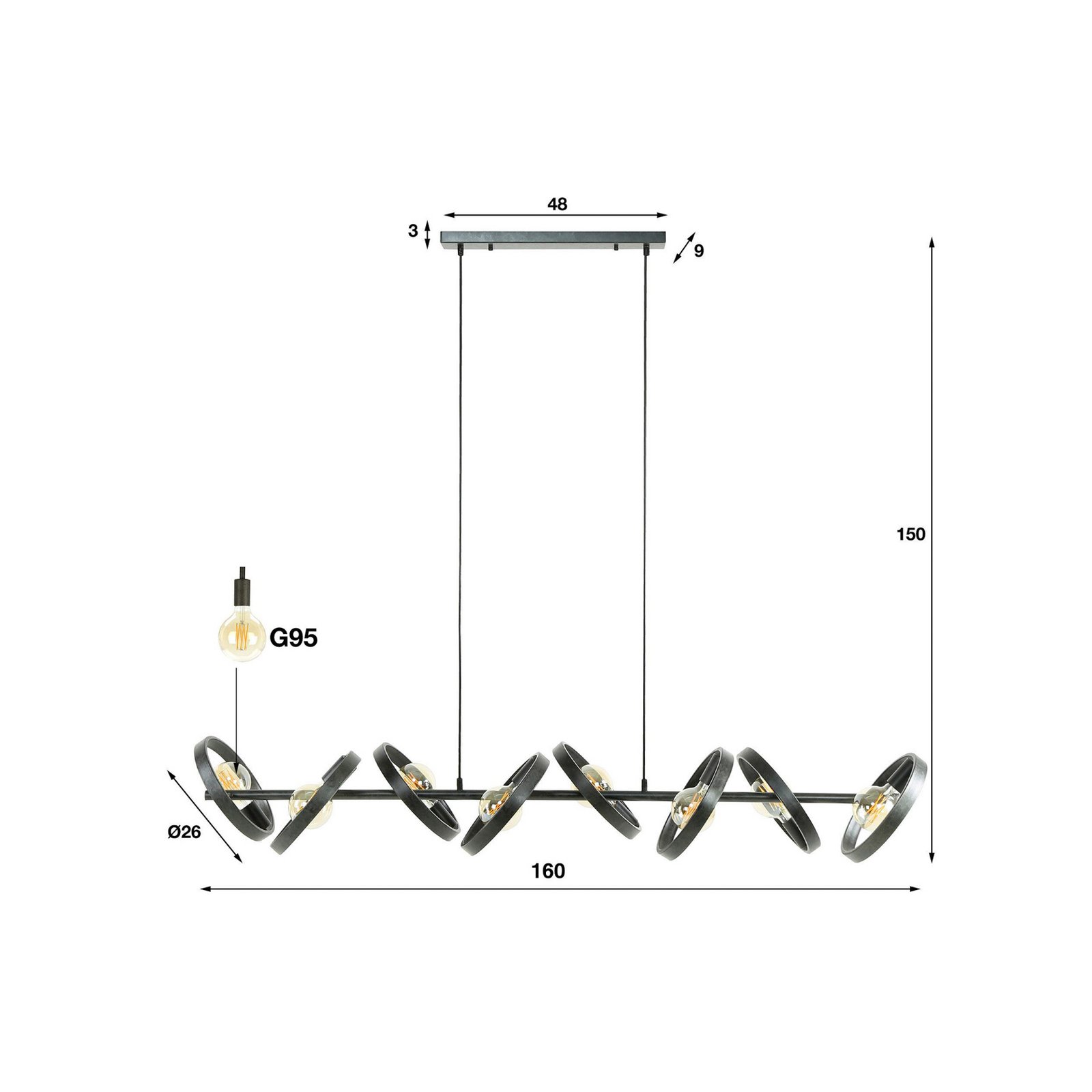 Ringelbachi rippvalgusti pöörlevate metallrõngastega Ringelbachi rippvalgusti on varustatud E27 pistikupesadega, mis on paigutatud pöörlevatesse rõngastesse. Valgusti avaldab muljet oma moodsa, veidi futuristliku disainiga, mis on valmistatud antratsiidi värvi metallist ja sobib ideaalselt pikkade laudade valgustamiseks. E27 pistikupesadesse saab paigaldada teie valitud valgusallikaid; väga atraktiivsed näevad välja hõõgniiditehnoloogiaga LED-klaaslambid, nagu on näidatud fotol. Kui on valitud timmitavad valgusallikad, saab valgust ka välise dimmeriga timmida.