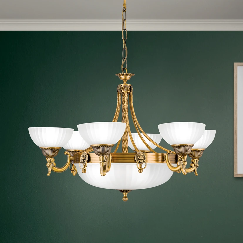 Muljetavaldav klassikalise välimusega Rocca lühtri Kui soovite täiendada klassikalist sisustusstiili elu- või söögitoas või sissepääsualas, on Rocca lühtri õige valik. Atraktiivselt kujundatud metallraamil on arvukad detailid ja pronksisevärviline välimus. Komplekti täiendavad valged klaasist lambivarjud, mis kiirgavad allapoole suunatud kaudset valgust, luues väga tõhusa, kuid tasakaalustatud ja meeleoluka üldvalgustuse.
