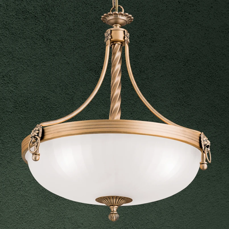 Elegantne Rocca rippvalgusti koos pronksvärvi dekoratiivsete elementidega Rocca rippvalgusti varju ei ole mitte ainult kaunilt kujundatud, vaid ka värviliselt silmarõõmustav. Valge alabastri välimusega klaas on kujundatud kumera poolkera kujulisena, mille ülemistel servadel ja keskpunktis on pronksivärvilised aplikatsioonid. Pronksivärvilised lõvipead on nende aplikatsioonide tipphetkeks. Katus koosneb tugevast valatud osast. Keti pikkust saab paigaldamisel individuaalselt lühendada. Rocca rippvalgusti tagab pimestusvaba ja alati pehme, sooja valguse.